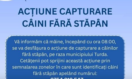 Primăria Municipiului Turda anunță că miercuri, 21 ianuarie 2026, începând cu ora 08:00, va avea loc o acțiune de ecarisaj pentru capturarea...