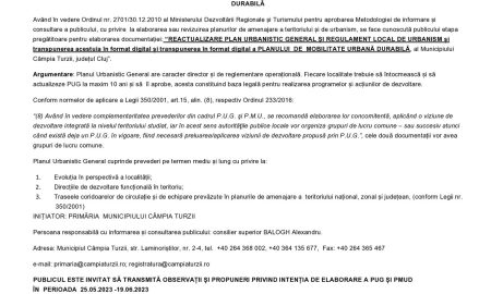 Anunț intenție de elaborare plan urbanistic general și plan de mobilitate