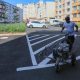 Turda. Au fost trasate marcajele aferente locurilor de parcare amenajate în curțile interioare de pe Calea Victoriei 102-110.