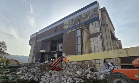 Au început lucrările de demolare a clădirii Casei de Cultură din Piața 1 Decembrie 1918 Zona scărilor din fața clădirii a fost...