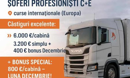 🚛 Vulp Logistics angajează șoferi profesioniști C+E 📍 Curse internaționale (Europa) 💶 Câștiguri excelente: 👉 6.000 €/cabină 👉 3.200 € simplu +...