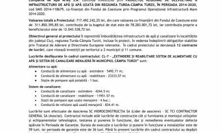 CL-7 – „EXTINDERE ȘI REABILITARE SISTEM DE ALIMENTARE CU APĂ ȘI SISTEM DE CANALIZARE MENAJERĂ ÎN MUNICIPIUL CÂMPIA TURZII” – peste 97%...
