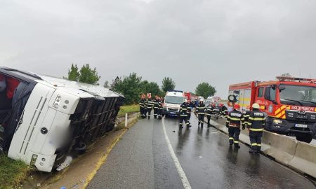 Cluj – localitatea Dumbrava – accident rutier – autocar care s-a răsturnat în afara părții carosabile