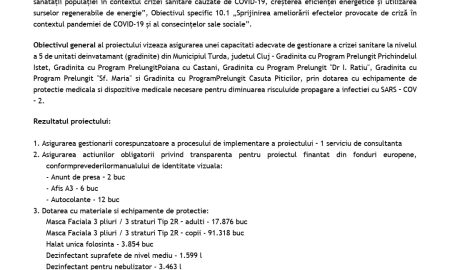 Comunicat de presă privind finalizarea proiectului „Consolidarea capacitatii gradinitelor din Municipiul Turda in vederea gestionarii situatiei de pandemiegenerata de virusul SARS-COV-2 2020”