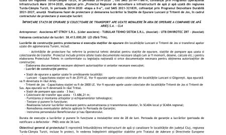 CONTRACT DE LUCRĂRI – CL4 – ÎNFIINȚARE STAȚII DE EPURARE ȘI COLECTOARE DE TRANSPORT APE UZATE MENAJERE ÎN ARIA DE OPERARE A...