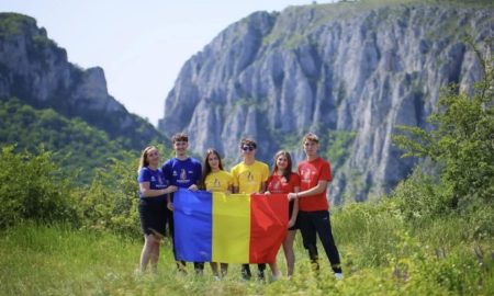 Cinci elevi de la Colegiul Național „Mihai Viteazul” Turda – Yasmin, Diana, Filipe, Dragoș și Cătălin – alături de mentorul lor, Pop...