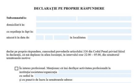 Noua declarație pentru deplasarea pe timp de noapte în afara locuinței a fost făcută publică de autorități. De duminică seară, începând cu...