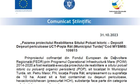„Fazarea proiectului Reabilitarea Sitului Poluat Istoric – Depozit Deşeuri periculoase UCT-Poşta Rât (Municipiul Turda)”Cod MYSMIS: 109815