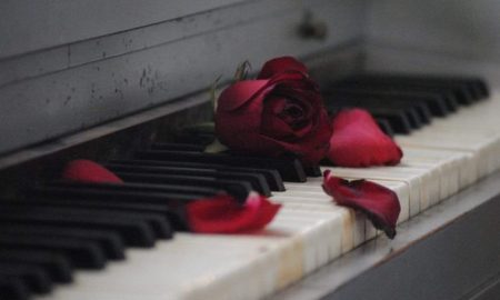 Departe sunt de tine, Te-aștept să vii la mine Stau singur în grădină, Pe banca de sub nuc Nu pot ca să...