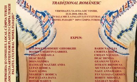 Asociația Artiștilor Plastici din Câmpia Turzii, în parteneriat cu Primăria Municipiului Câmpia Turzii prezintă, vineri, 23.11.2018, vernisajul intitulat „Tradițional românesc”. Printre expozanți...