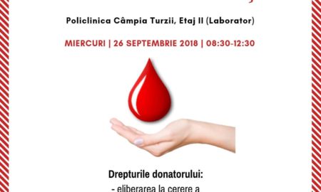 A treia ediţie a campaniei „Donează sânge. Salvează vieţi” se va desfăşura miercuri, 26 septembrie 2018, în incinta Policlinicii Câmpia Turzii, Etajul...