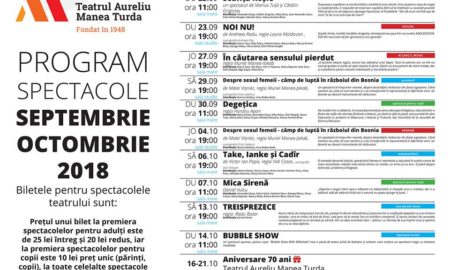 Program variat al Teatrului Aureliu Manea din Turda, în luna septembrie și octombrie. Teatrul Aureliu Manea din Turda, își începe stagiunea în...