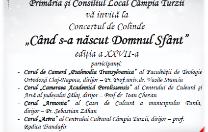 Primăria şi Consiliul local Câmpia Turzii organizează concertul coral de colinde „Când s-a născut Domnul Sfânt”, ediţia a XXVII-a. Căncertul va avea...