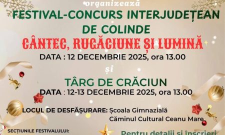 Festival-concurs de colinde și Târg de Crăciun la Ceanu Mare Primăria și Consiliul Local Ceanu Mare, împreună cu Școala Gimnazială Ceanu Mare,...