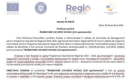 Finalizare proiect REABILITARE LOCUINȚE SOCIALE (124 apartamente)