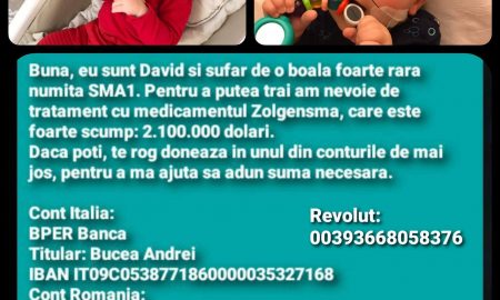 Un nou caz caritabil pentru care se adună o întreagă suflare cetățenească. David, un scump îngeraș de 7 luni, băiețelul unor părinți...
