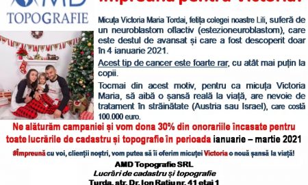 Micuța Victoria Maria Tordai, fetița colegei noastre Lili, suferă de un neuroblastom oflactiv (estezioneuroblastom), care este destul de avansat și care a...