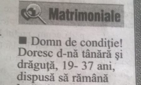 Ziarul 21 vine cu o rubrică de mică publicitate dedicată celor ce sunt în cautarea iubirii, a prieteniei sau în a-și alina...