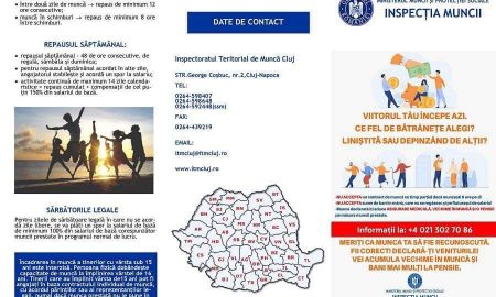 Prin campania “Viitorul tău începe azi, meriți ca munca ta să fie recunoscută”, desfășurată de către Inspectoratul Teritorial de Muncă Cluj sunt...