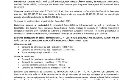 Compania de Apă Arieș S.A. continuă investițiile prin PROIECTUL REGIONAL DE DEZVOLTARE A INFRASTRUCTURII DE APĂ ȘI APĂ UZATĂ DIN REGIUNEA TURDA-CÂMPIA...