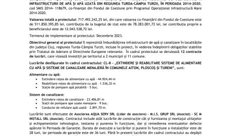 Peste 87% progres fizic de execuție a lucrărilor din cadrul contractului CL-8 „EXTINDERE ȘI REABILITARE SISTEME DE ALIMENTARE CU APĂ ȘI SISTEME DE CANALIZARE MENAJERĂ ÎN COMUNELE AITON, PLOSCOȘ ȘI TURENI”