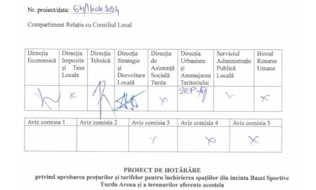 Primăria Turda: Se află în procedura de elaborare Proiectul privind aprobarea tarifelor pentru închirierea spațiilor din incinta Bazei Sportive Turda Arena și a terenurilor eferente