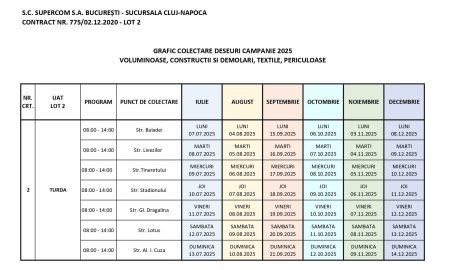 Locuitorii municipiului Turda beneficiază și în a doua parte a anului 2025 de un program dedicat colectării deșeurilor voluminoase, din construcții și...