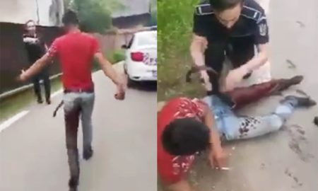 Tânăr împușcat în picior de către polițiști după ce a încercat să ia arma unui polițist