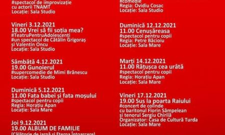 Pentru iubitorii de teatru, iată care sunt spectacolele cu care actorii Teatrului Național Aureliu Manea din Turdă vă așteaptă in luna Decembrie...