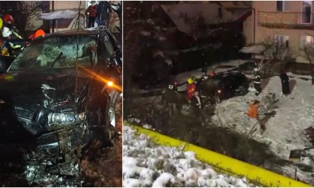 Trei bărbați în spital după ce au „zburat” cu mașina de pe drum în curtea unei case